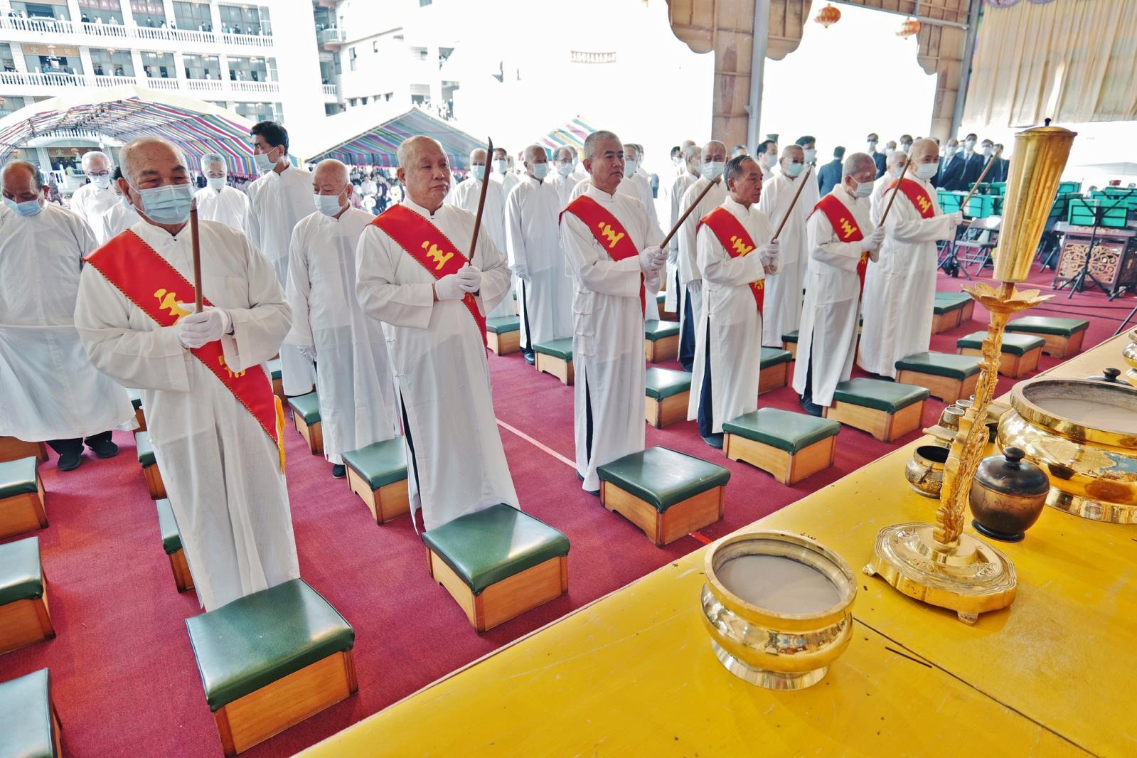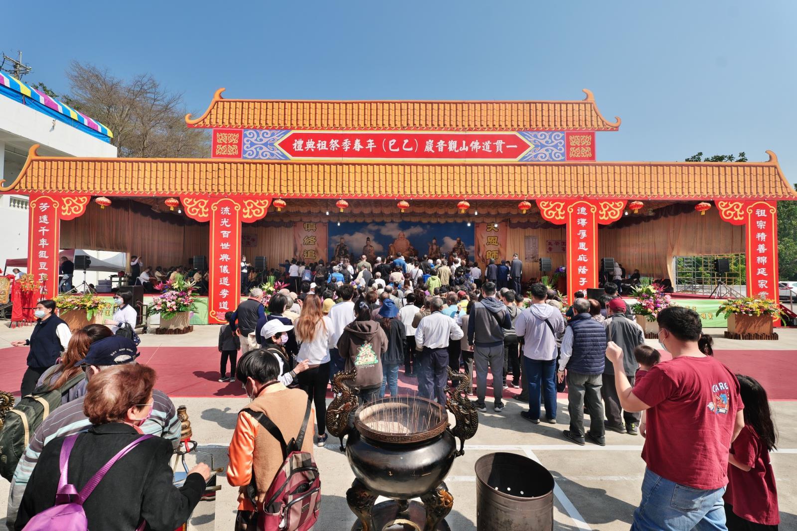 祭祖典禮活動現場雖然人數有數千名之眾,但大家仍不亂次序懷著感恩追思的心情,手捻清香緩緩地步上祭祖臺,虔心誠意懷思祖德,等大眾都參拜完成後,今年的春季祭祖大典也即將進入尾聲,最後的送神,將神主牌位恭送回各樓層原位安奉。在一陣響徹雲霄的鳴炮聲中典禮圓滿完成,大家滿懷著感恩感動的心踏上了歸途。