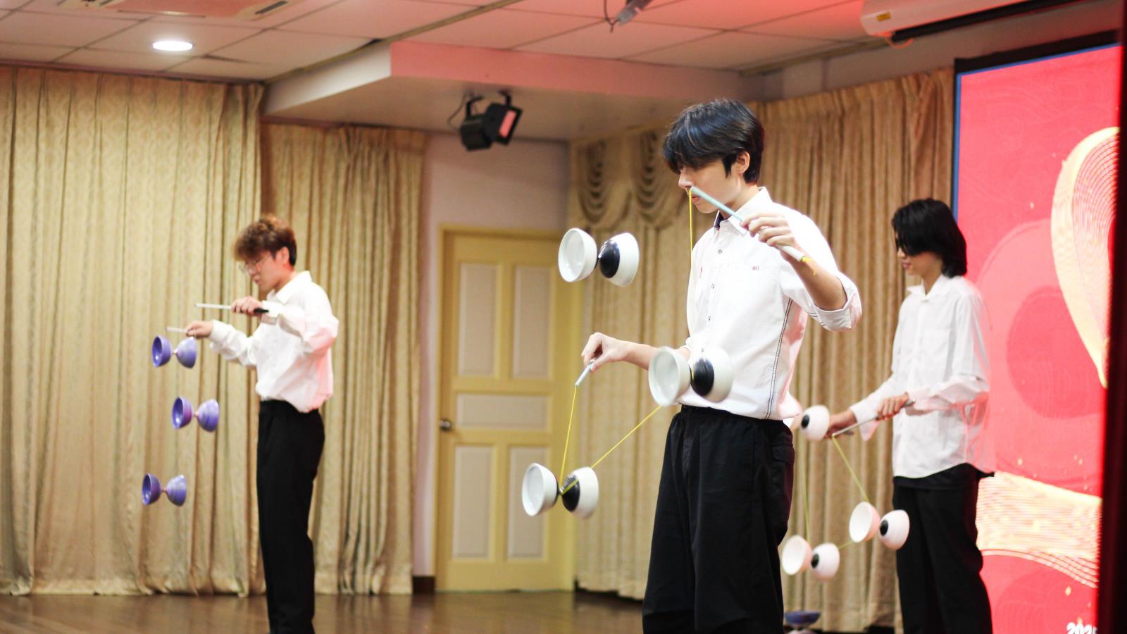 圓覺禮堂鑼鼓喧天,新春節目盛大開演!醒獅騰躍,威風凜凜的德龍舞獅團,在歡呼聲中舞動全場,寓意納福迎祥、道運綿延。緊接著,長青舞蹈團活力登場,伴隨《新年快樂歌》、《2025好運來來來》的旋律,舞步輕盈,喜氣洋溢。隨後,精彩的節目《華韻龍騰》中青少年组精心演绎,帶來了一場技藝精湛的扯鈴表演。表演者靈巧翻飛,盡顯中華傳統藝術之美,讓觀眾沉浸於歡樂祥和的節慶氛圍。