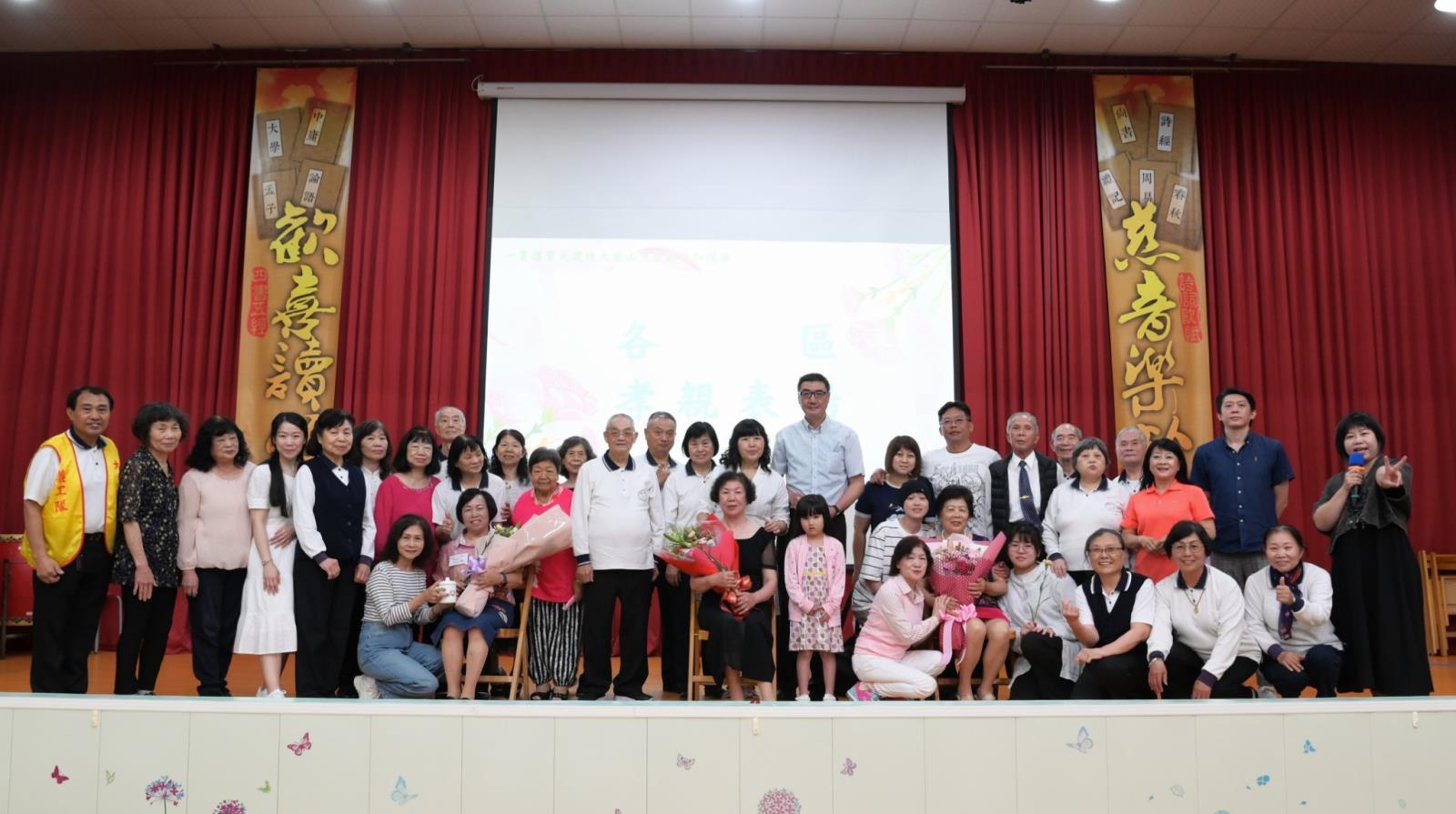 第五期人才培訓班帶來創意快閃與手語歌曲,傳遞「請你聽我說謝謝你」的感恩心意,全場動員共鳴,為活動畫下溫暖圓滿的句點。開場時的快閃部隊帶頭唱”天下的媽媽都是一樣的” ,很新奇您可以猜猜下一個快閃部隊在哪一個位置出現,大家的注意力也都集中了。接下來手語帶動”請你聽我說謝謝你” ,因為動作易學現場的前賢也都一起比手語唱歌,真的是全員動員嗨到最高點。最後是一首”孝敬父母”大合唱, 代表著今天的活動主題我們為人子女的感恩