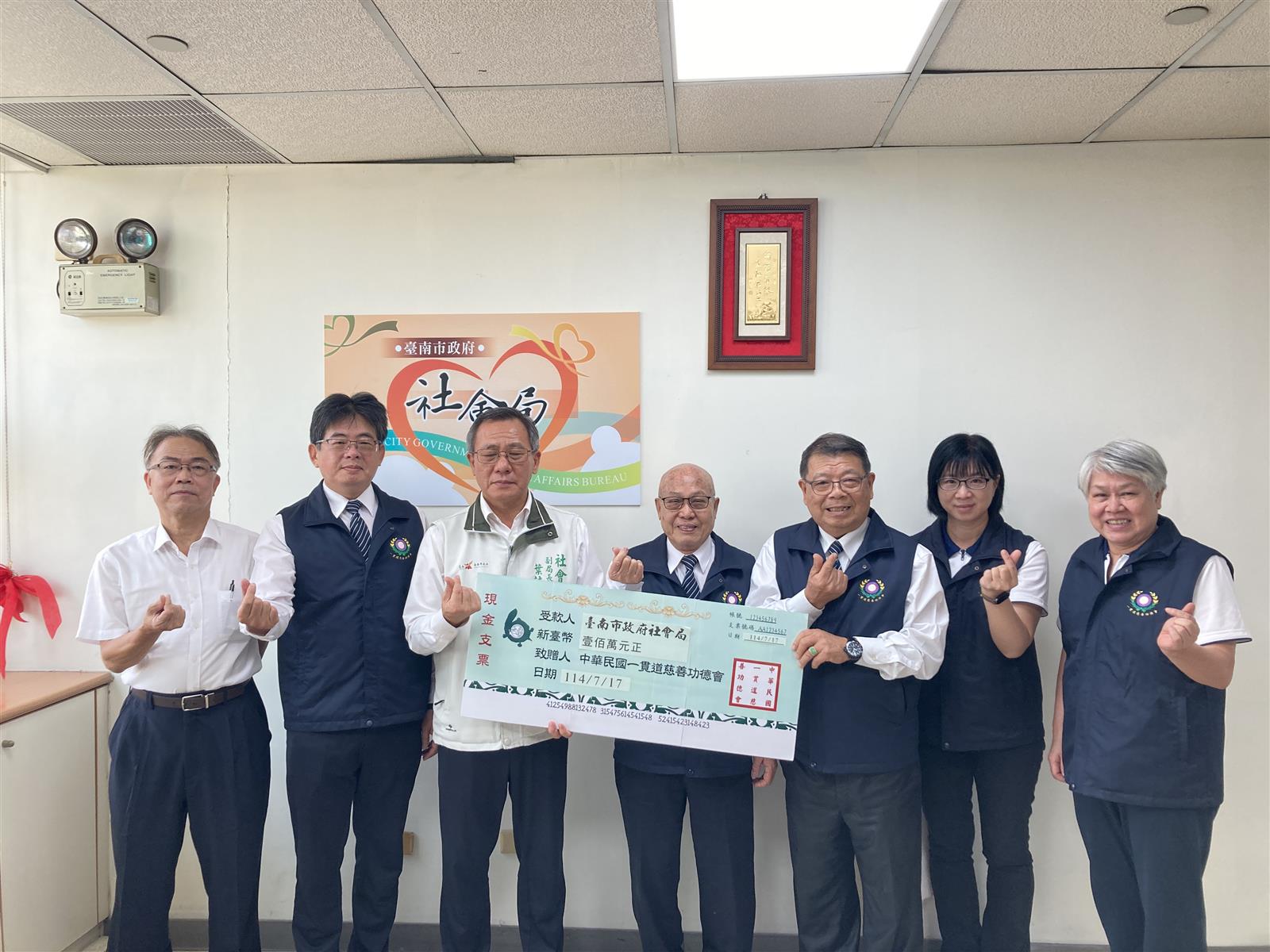 2.一貫道慈善功德會陳有財理事長代表捐贈100萬元提供台南市政府救災之用