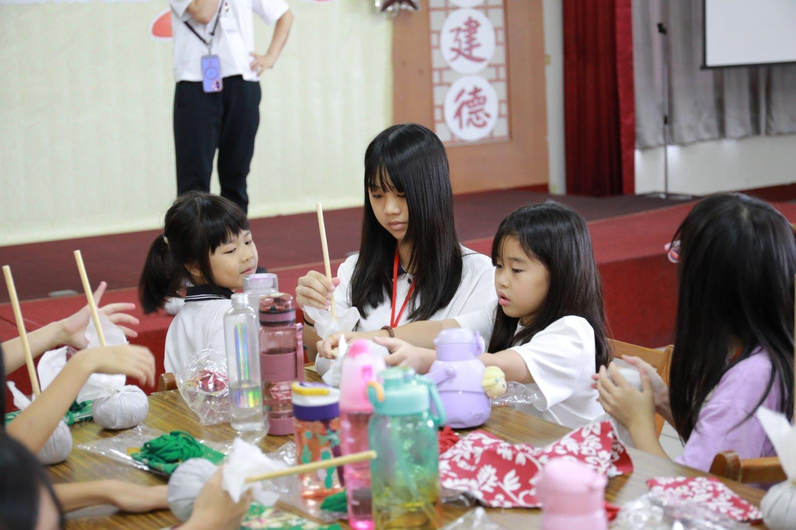學員為家長製作孝親艾草棒