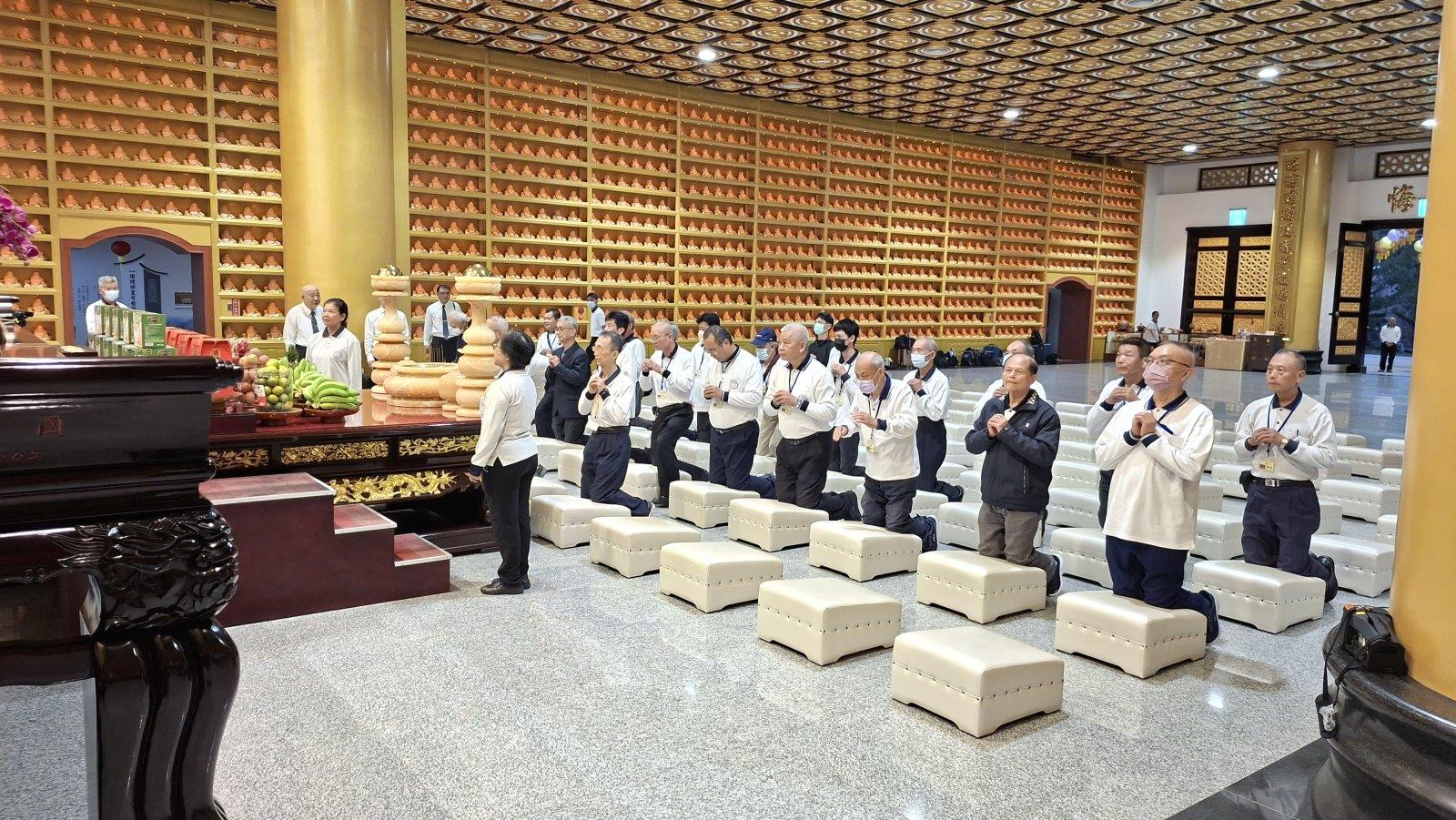 此行有一位司機大哥是遊覽車的老闆,在誠心道親的成全下,當晚在莊嚴大道場的祖師殿舉行求道儀式,在80幾位道親的見證下完成求道,由天圓道場的蕭點傳師點道,這一刻,這一幕,真是太不可思議,一切都是上天最好的妙安排,我們同沾天恩師德,法喜充滿。為這一夜,留下一篇美好的篇章~~