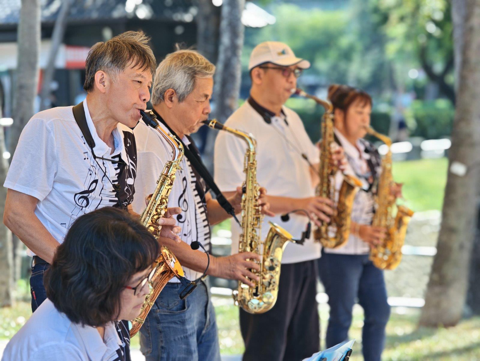 緊接著由大鼎樂團登台,以薩克斯風演奏懷舊樂曲,樂聲在會場中流淌,如金秋陽光般溫柔,讓長者們陶醉其中,臉上綻放滿足笑容。音樂不僅撫慰人心,也讓在場嘉賓感受到對長者深深的敬意與祝福。