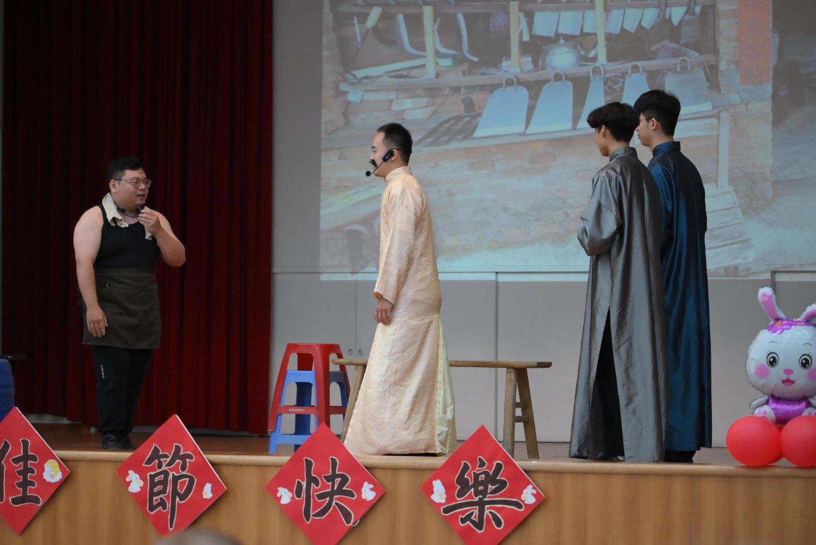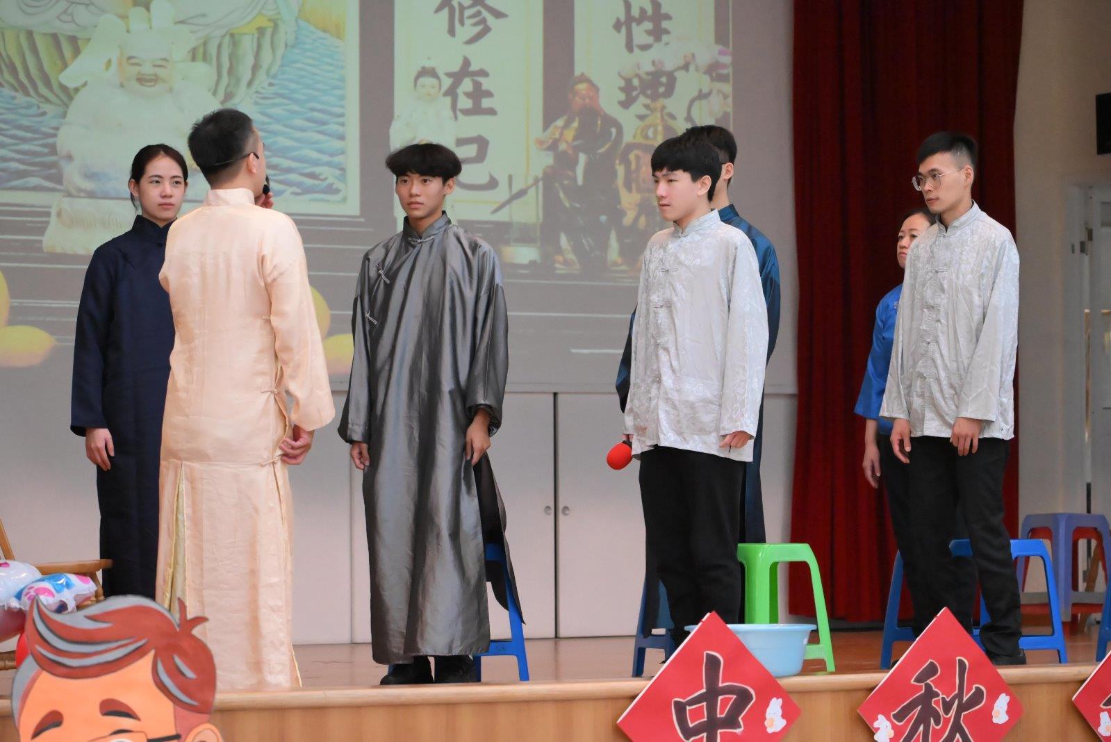 為了緬懷師尊,以話劇方式呈現對一貫弟子的諄諄教誨,讓我們瞭解為何在中秋佳節時,一貫弟子總是要慎終追遠並感念師恩。由建青前賢帶來了兩則話劇:《打鐵匠的毛巾》和《認理歸真》。雖是短短的戲劇,但呈現出道親們津津樂道的師尊故事,讓所有道親都能再次的回味最初辦道的誠心。在打鐵匠的故事中,讓我們明白大德者看見的從來都不是表面的光鮮亮麗,而是我們內心是否有道,是否有好好修辦。