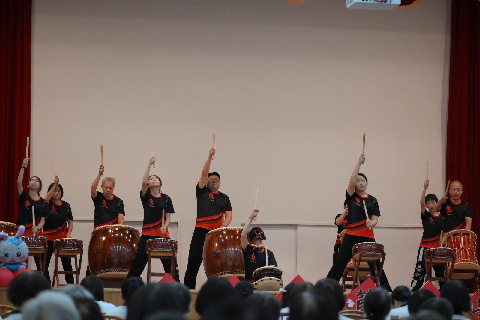 天祥太鼓班表演四首曲子,所用的鼓有平鼓、締鼓、桶鼓及大鼓,每種鼓的音階不同,展現出來的美感及震撼力是不同的,故曲風有時優美、有時磅礡、有時震撼,其深沉、共鳴的音調營造出一種宏偉感、動感和强度。