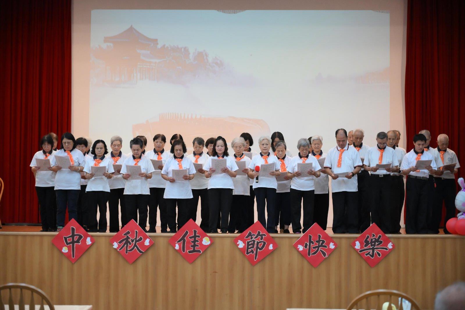 認理歸真的故事更是提醒了每位道親,在繁雜的生活中,我們要時時守住本心、本性,不能因外在環境干擾了自己的修道路,同修道伴雖然重要,但修道在自身,我們更要常想起師尊的教誨:不要認人修,要認理實修!戲劇表演之後,緊接著是樂齡班前賢們的道歌演唱,班員年齡皆在65~90歲之間。聽著和戲劇相呼應的歌曲,在悠揚歌聲中,感念著師尊對我們的關愛和慈悲,就算我們和師尊在中秋分離,但愿力會照著心燈,繼續前行,期盼能夠和老師相見