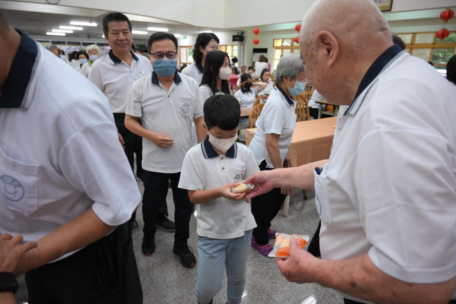 活動結束後由點傳師們賜福,每位道親都能從點傳師手中領到一個月餅及一顆蘋果;月餅代表月圓人團圓,蘋果代表平安順遂。點傳師們希望大家能夠闔家團圓、平安健康。中午享用由各區道親共同準備的豐富菜餚,滿滿當當數十道菜代表著烹飪者滿滿的愛心,大家吃在嘴上甜在心裡,感恩廚師們的辛苦付出。回想今天所有過程,大家盡心盡力只為讓活動圓滿,看著忙進忙出的所有身影,再次感恩仙佛的庇佑、感恩師尊的呵護、感恩點傳師們的教導、感恩各位前賢的相互提攜,感恩有這麼好的道場讓道親們修辦道。