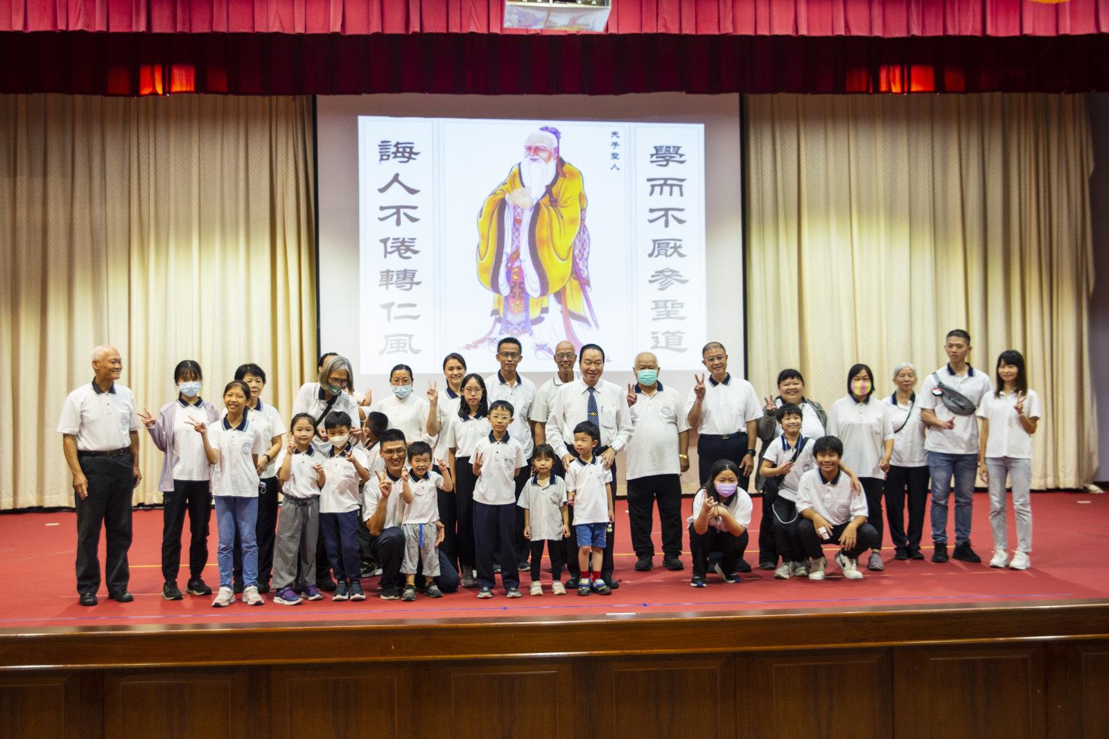 活動一開始,由蔡武章點傳師帶領全體師生、家長齊聚於敬孝堂,舉行莊嚴肅穆的拜師典禮,典禮中,全體參與者一同感謝天恩師德、林公再錦前人與黃張源前人的慈悲教化,學生們則向老師與家長代表行拱手禮,表達其感謝之意,這一莊嚴儀式不僅展現天臺道場尊師重道的精神,更深化了會考「以經典為傳家之寶、以禮儀為日常根基」的核心理念。