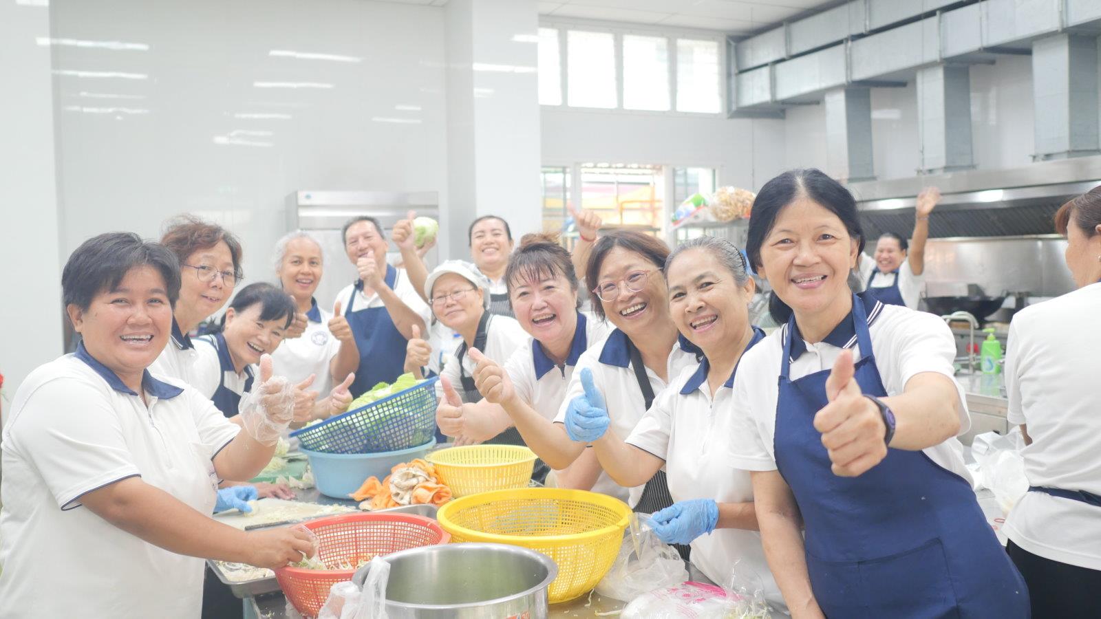 今年的九皇齋,更添一分殊勝與圓融。來自海外與台灣的道親組成伙食志工團,遠赴泰國天佛道場參與當地供齋活動,三地志工雖語言各異,卻同願同行,以道為橋,以愛為舵,弘揚無私奉獻的精神,讓慈悲的光輝跨越國界、照亮人心。活動期間,志工們每日於佛堂準備近千份素食,免費分送給民眾。餐食色香味俱全,皆以慈心烹調,寓意「食無殺業,心常清淨」。無論廚務、接待或秩序維護,志工皆以謙誠恭敬之心行功辦道,不計名利,志工們微笑地為民眾奉上齋飯,一句「請慢用」,傳遞的不僅是溫暖,更是慈悲與修行的力量。