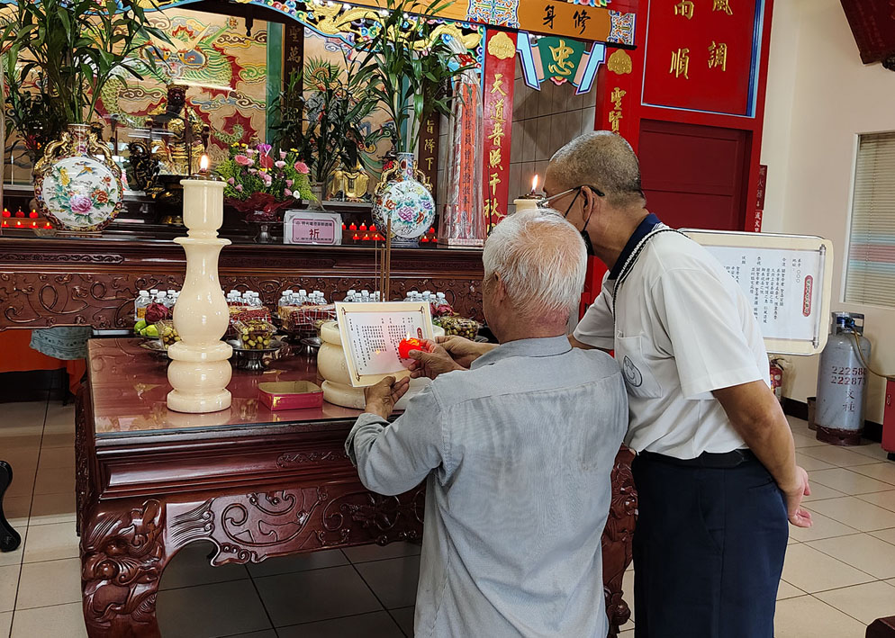 關聖帝君是民間對關羽成神後的尊稱,係儒釋道三教並容的神明,天泉宮一樓為「恩主公」,正龕供奉關聖帝君,在這擁有深厚文化底蘊的客家鄉鎮,都能感受到關聖帝君所帶來的以「忠義」為核心價值的關公精神。當天節氣正值小暑鄉親們的熱情不減,每位前賢於淨手後,親自點燈,點燃一盞「感恩祈福燈」,跪在拜墊上恭誦祈願文,大家手捧祈福燈,用誠敬的心共同祈求,願集眾人愿力之大成,照亮三界十方,祈願默佑生靈平安無難。「祈福開智慧」開智慧求光明點亮心燈,讓生命發光讓身心得以安和,最後每人領取一包祈福「平安米」、「發財水」回去和家人一起享用,祈求闔家安康;一樓恩主宮備有「平安齋」及客家麻糬,一同同霑法喜,共沐聖恩。