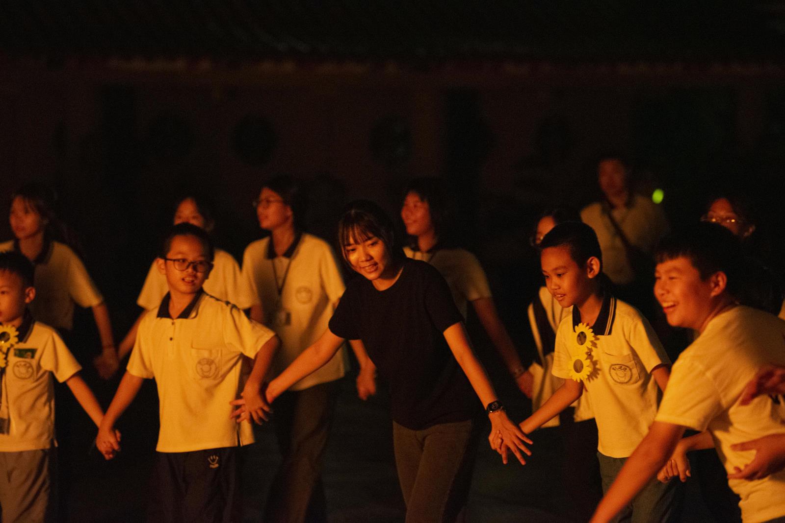 今年營隊不只是營隊,有著深層的「傳承」意義,兩天中的三堂主課的授課辦事員,呈現出老、中、青三個世代對於「汎愛眾」的詮釋;曾是品格溫養營的學員現在已是大學生,又重回營隊擔任隊輔;也有壇主擔任隊輔,孩子是學員,共同投入營隊活動;攝影組忙著隨行拍攝營隊點點滴滴,國中生的孩子到禮節生活組協助營隊食衣住行的後勤工作;總務組也帶著下一代張羅營隊需要的大大小小物品;活動組長搭配營火組帶領道二代、三代的年輕夥伴,帶動營隊滿滿動感活力氛圍。