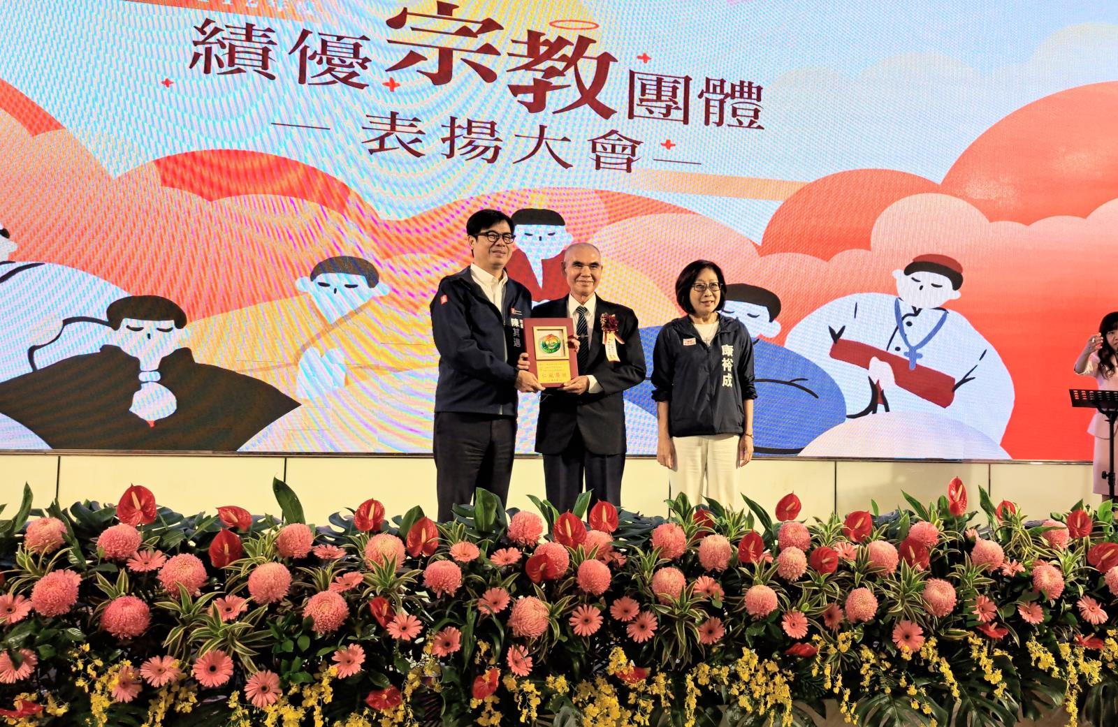 台灣高雄市政府民政局於2024年12月18日(星期五),假高雄市鼓山區林皇宮餐廳舉辦112年度宗教團體捐資興辦公益暨慈善事業績優表揚大會。本次頒獎典禮由市長陳其邁親自頒獎給所有受獎宗教團體,受獎一貫道宗教團體計有寶光建德神威天臺山(黃三燕壇主代表領獎)、寶光建德天臺聖宮(謝春旺壇主代表領獎)、興毅純陽聖道院,其他宗教團體接受頒獎共計有99個單位。陳市長代表市民誠摯感謝宗教團體的付出,特別是凱米颱風及山陀兒颱風侵襲高雄,造成嚴重破壞,在這期間許多宗教團體挺身而出,提供物資援助及心靈慰藉,與市府、市民一同度過難關。