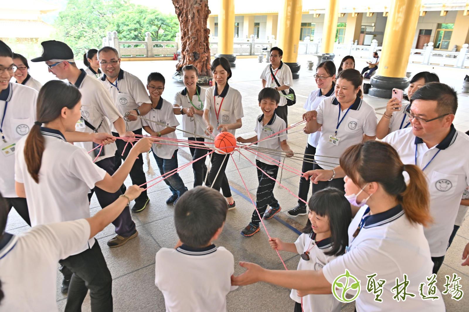 共同合作傳球的闖關活動 讓大朋友跟小朋友都合作無間