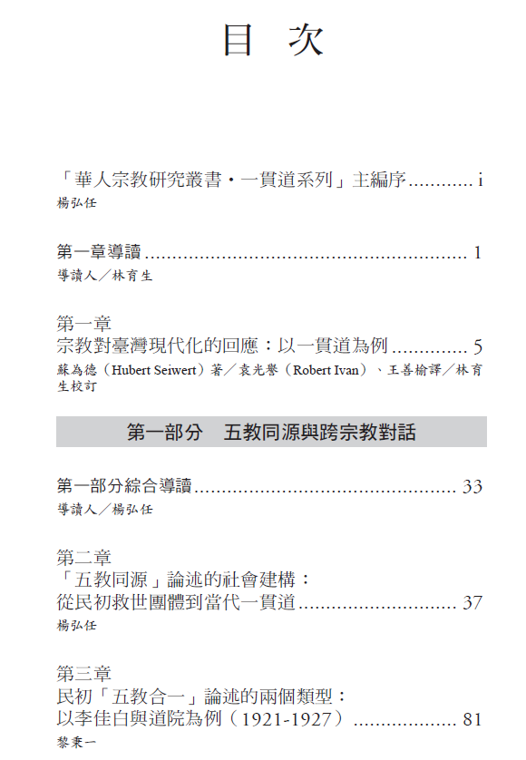 感謝國立政治大學的政大出版社、華人宗教研究中心及一貫道天皇學院聯合出版,藉本書的出版,後學盼望誠摯修辦的你我,能更深入認識當代一貫道與儒家思潮的關連,更有信心走在這條修辦道路上。