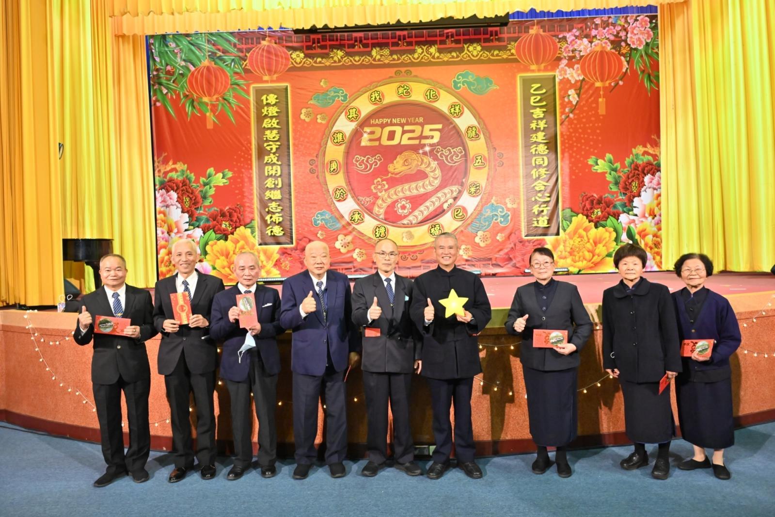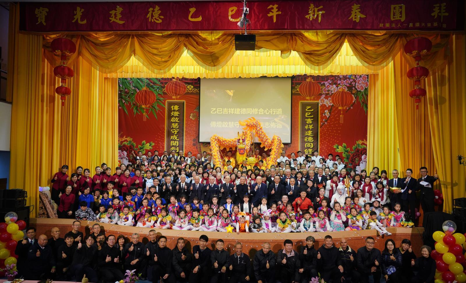 2025年寶光建德道務中心天皇宮新春團拜,終於歷經了近5年的時光,重新再啟動,也是大德黃前人荷擔前人後,所辦理的大型新春團拜活動,當日擇2025年大年初四於天皇宮地下室大講堂,近2000多名道親不約而同,共同見證這個歷史性的一刻。大德黃前人以「乙巳吉祥建德同修合心修道,傳燈啟慧守成開創繼志佈德」勉勵寶光建德全球道場同修。