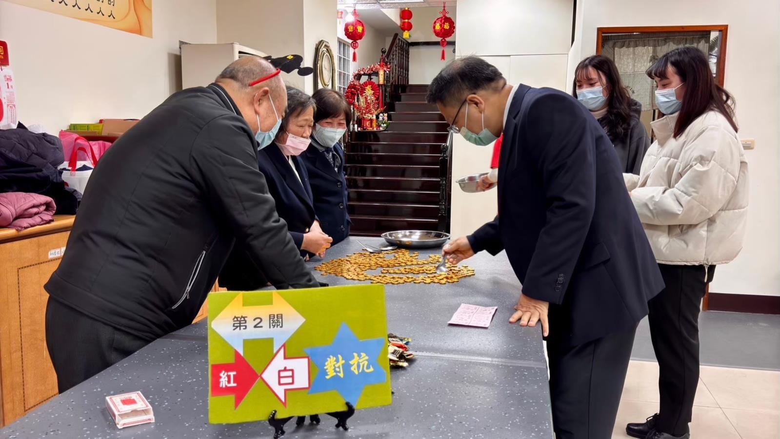 紅白對抗:以撲克牌與剷金幣的趣味競賽,展現群體智慧與默契,彼此扶持,共迎新春。