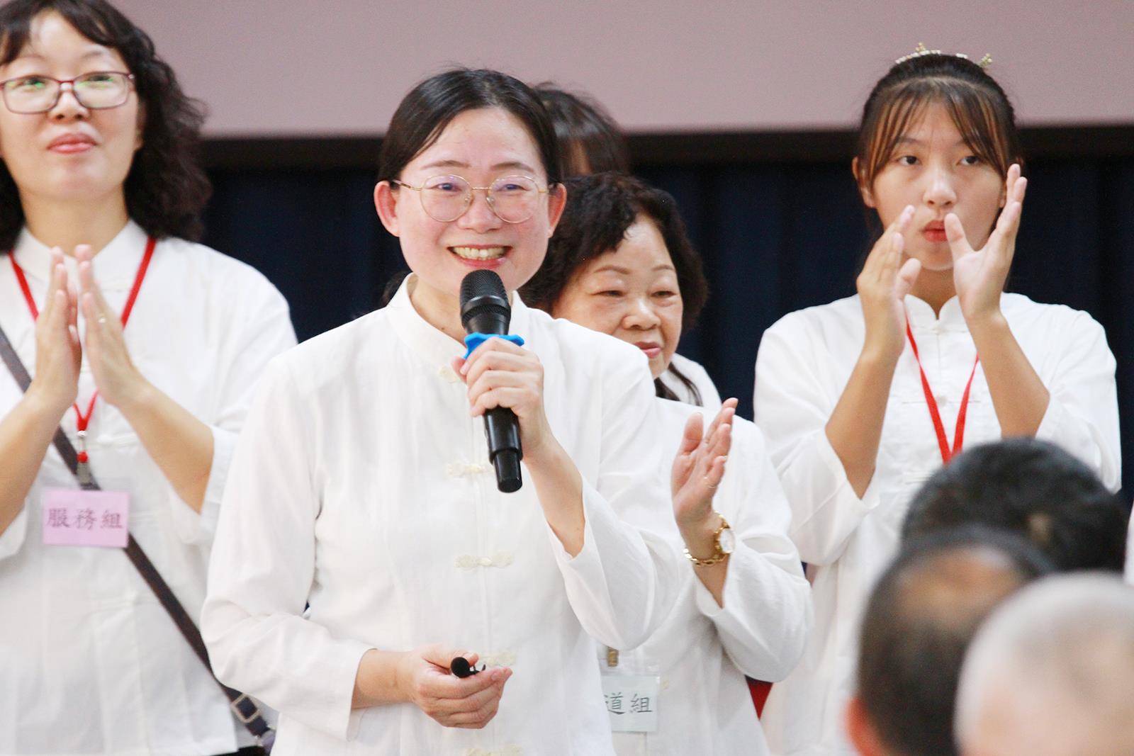 大德黃前人除了親臨祝賀,也慈勉大眾安座只是一個開始,未來能夠善用莊嚴宏偉的道場,廣渡更多的有緣眾生,啟發其本性良知,能和我們ㄧ起來修辦道,前人期勉天寬道場未來會如盧(秀燕)市長所贈匾額一樣 「天道寬宏」,道務蒸蒸日上。