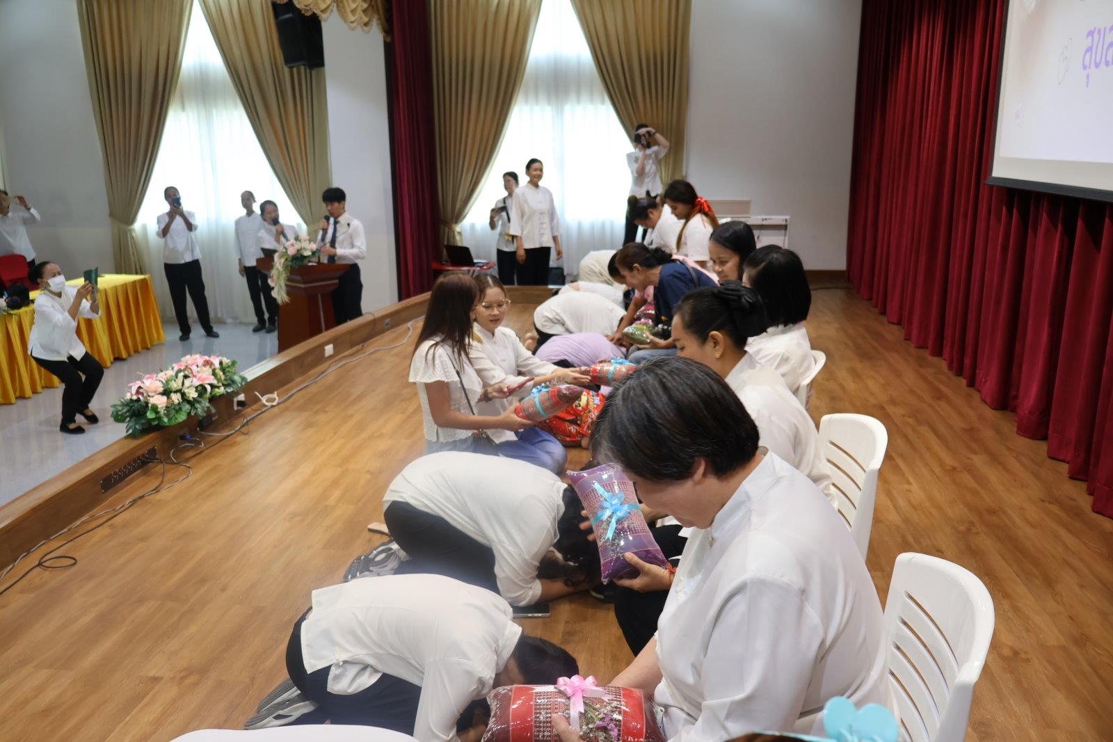 節目壓軸是孩子對母親行泰國最至上的跪拜禮,這是泰國傳統中最為莊重的尊敬儀式。孩子們跪下,將親手製作的手作花束與禮物奉上,這一刻,母親們的眼中充滿了淚水,感受到孩子們最真摯的愛與尊敬。這樣的跪拜禮不僅是對母親的尊重,也是孩子們對母親深深的感激和祝福。