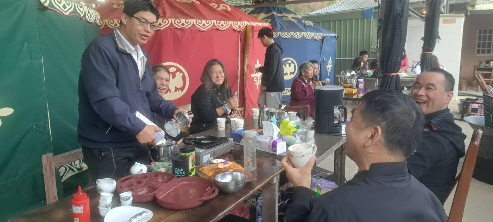 此次活動,除了青年們自己準備的吃食以外,前賢們還提前備好大量食材與暖心湯品、零食點心供青年同修們享用。這就是建德的古早味啊! 無論是在日正當中,太陽高掛的正午;或是在夕陽斜照,山風微涼的傍晚;亦是在露水未散,晨霧瀰漫的清晨,總是會在前賢們揮汗烹煮的背影裏看到老前賢們愛護小後學關心、照顧與提攜的建德家風。除此之外,還有許多位點傳師帶領著德長、前賢們特地前來關懷鼓勵,甚至留下來與我們同樂,成為初冬裡最溫暖的力量。