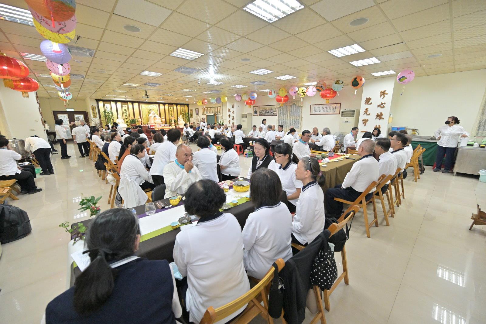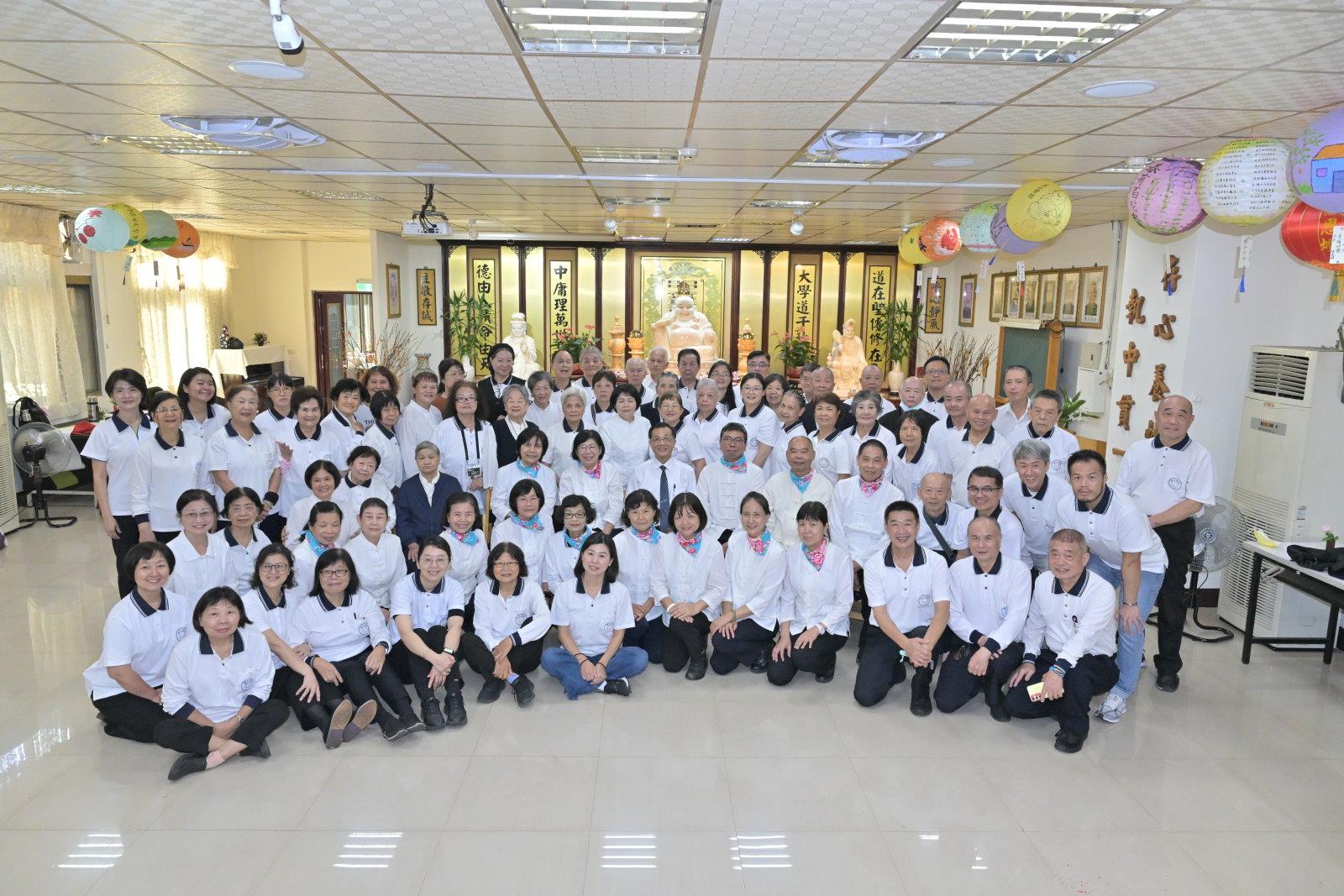緊接著,由佛堂善組前賢們帶領大家一同導唱三首道歌「代天宣化」、「一生照顧你」及「退一步海闊天空」,道歌是仙佛的教誨,是傳道的法音。大家齊聲歌唱,讓法音在佛堂中迴盪。這個環節不僅是情感的交流,更是心念的共振,讓我們感受了集體修持的喜悅與自在。