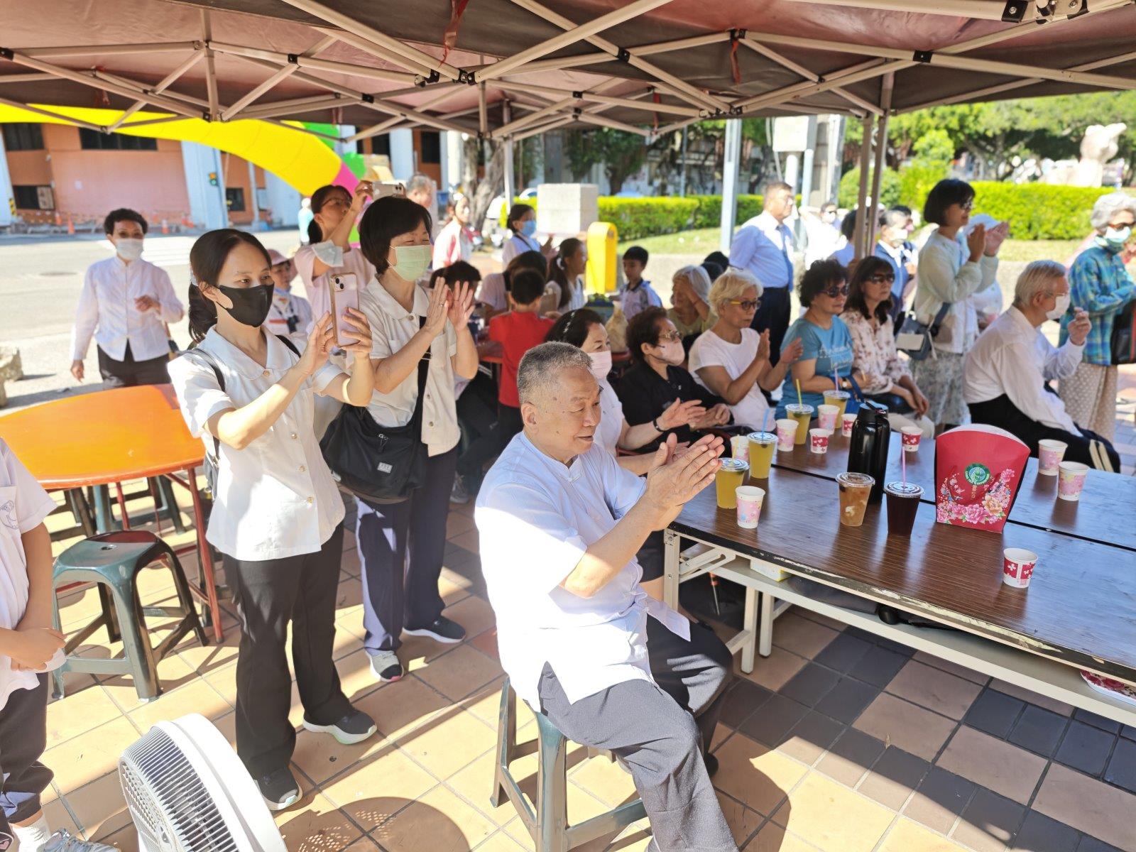 活動以鼓聲揭開序幕,由天律太鼓團帶來震撼人心的表演。首先登場的是太鼓團「淼」演出曲目〈戰〉,鏗鏘有力的鼓聲象徵生命的堅韌與奮鬥,展現長者不畏風霜、持續奮進的精神;隨後由太鼓團「森」帶來曲目〈春漫〉,節奏柔中帶剛,鼓聲如春風般溫潤,寓意著重陽佳節中的溫情與祝福。兩段演出節奏分明、層次豐富,震撼全場,掌聲經久不息。