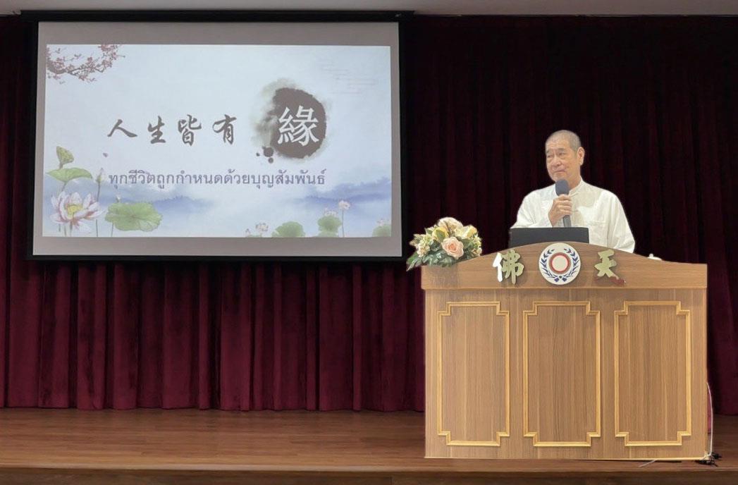 活動開始,恭請馬來西亞陳負責點傳師慈勉:「人生皆有緣」,佛教講「因緣和合」,說明宇宙事件人生,是結合各種條件而存在的,彼此都有互相依存的關係,一旦缺少「緣」,諸事難成,因此「緣」很重要。懂得培養善緣,好運也會跟著來。把握機會、珍惜因緣,好好結緣,進而惜緣、隨緣、明白因緣,生活可以幸福和諧,獲福無量。