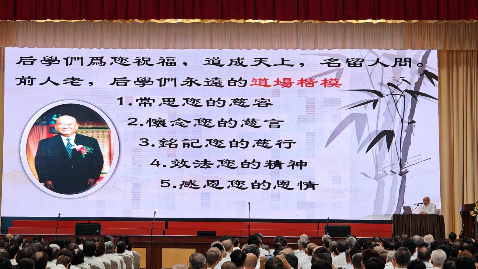 台上每一段的傾心呈現,都不斷地勾起後學們對林公前人在大馬道履聖跡的片片回憶。前人的活潑瀟灑,本來面目的行誼,道化寰宇的慈悲心懷,深深烙印在大家心中。前人道跡遍布全球,後學們無比光榮與幸福,矢志發心追隨前人的腳步開展聖業,繼往開來,道傳寰宇。