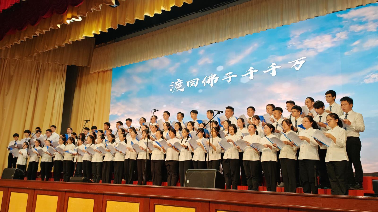 圓覺聖詩合唱團呈現了三首道歌——「前人交代的話」、「天馬願心」、「永懷敦化」。他們的歌聲緩緩道出前人慈愛後學,字字句句扣人心,心中難掩不捨,聖詩組員唱著唱著流淚了,台下聽著聽著也拿起紙巾拭淚了。他老人家的精神永遠深植在我們每一位寶光建德人的心中揮之不去,有時不用刻意想起,也不會輕易忘記。